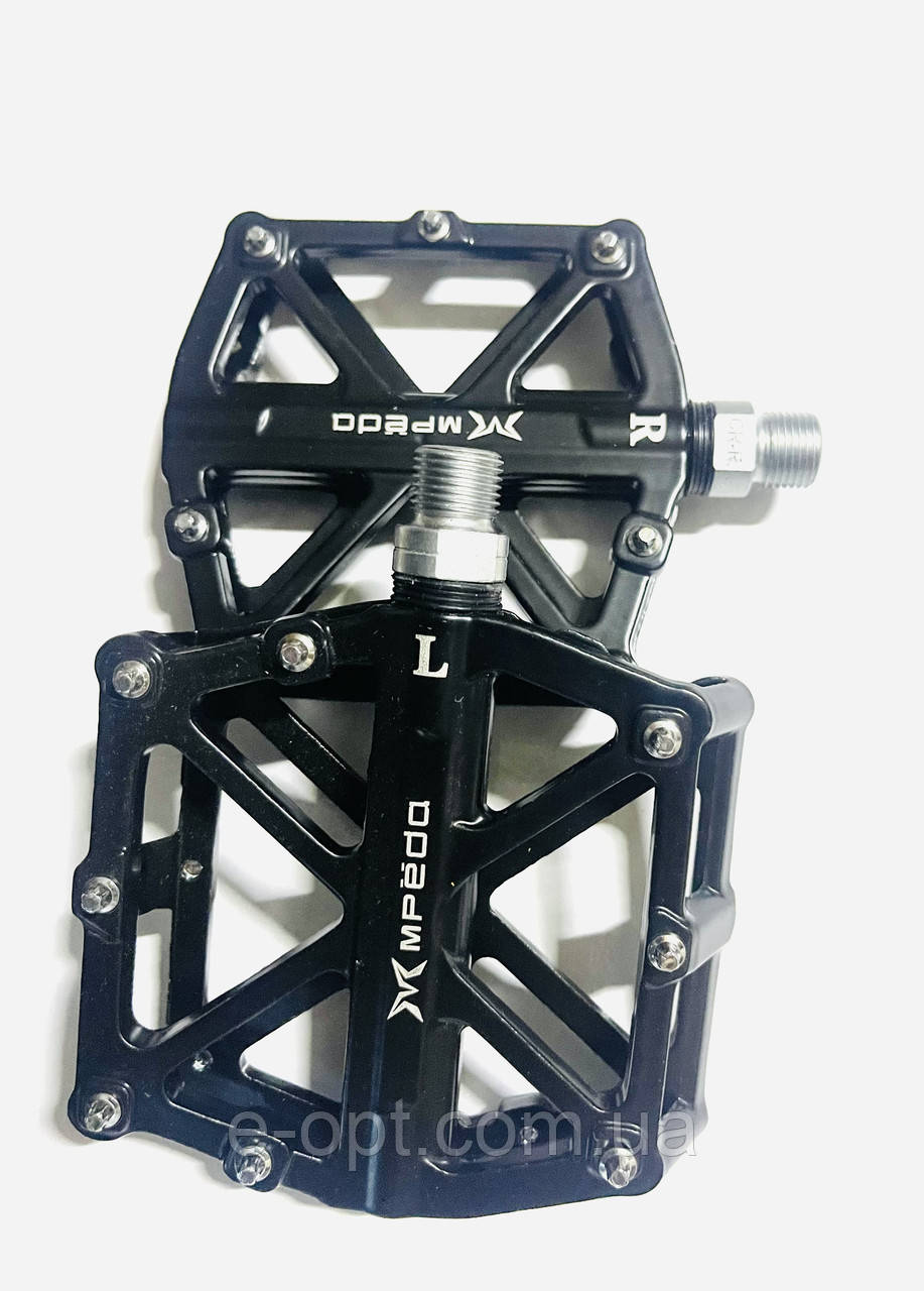 Педаль Mpeda. модель 10. з пром підшипником крутий дизайн педалей Mpeda. Тайвань. Литий алюмінієвий корпус марки алюмінію 6061 за технологією CNC Machined. Завдяки широкій поверхні основне призначення для велосипедів МТВ. ВМХ. Город.